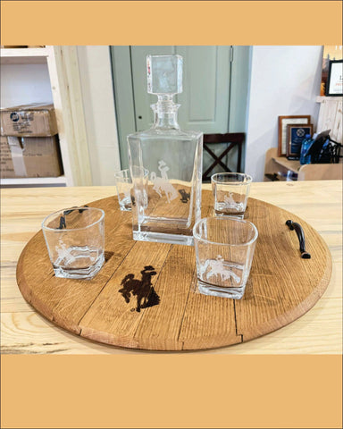 Wyoming Bucking Horse Engraved Decanter Set This premium decanter set is a must-have for whiskey lovers, rodeo enthusiasts, and anyone who appreci...